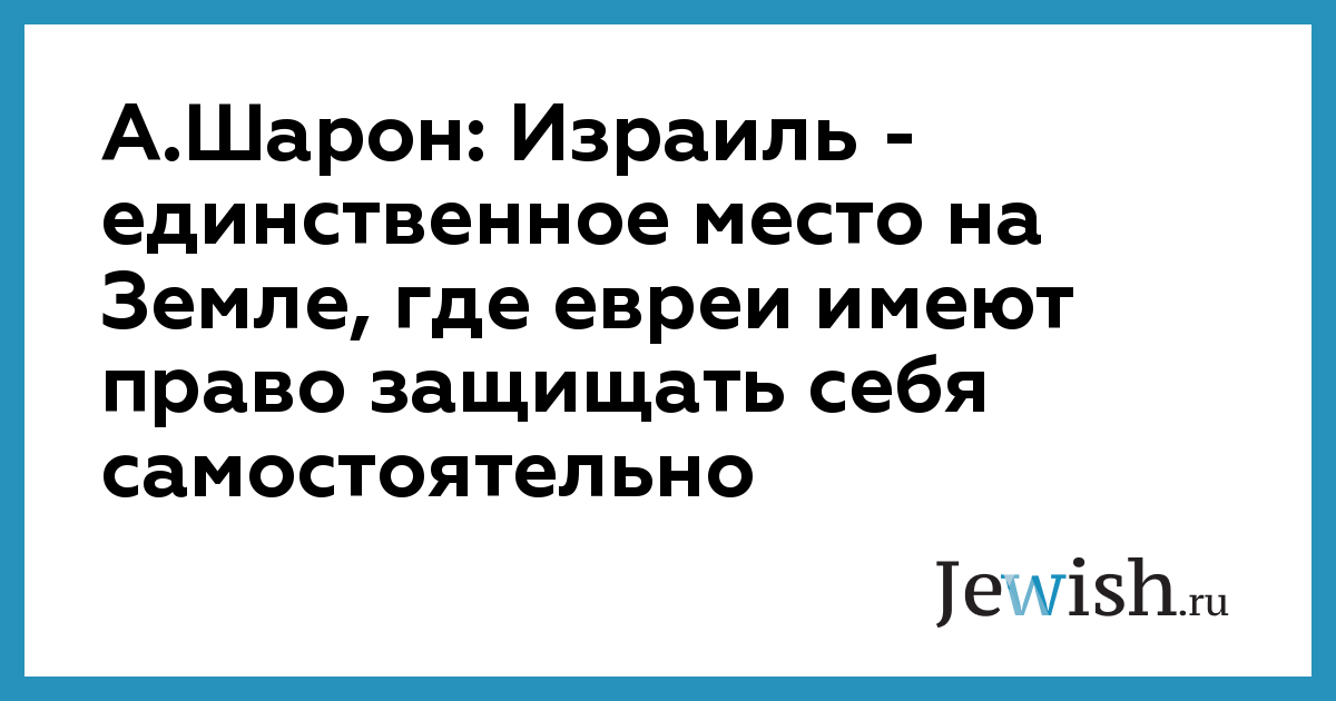 А.Шарон: Израиль — единственное место на Земле, где евреи имеют право защищать себя самостоятельно