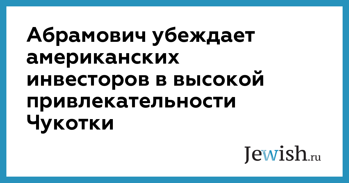 В настоящее время Абрамович совершает турне по американским штатам, выступая личным гарантом (состояние губернатора Чукотки оценивается в 2 млрд. долларов) надежности инвестиций, в которых так нуждается край, отделенный от Аляски узкой полосой пролива Беринга.