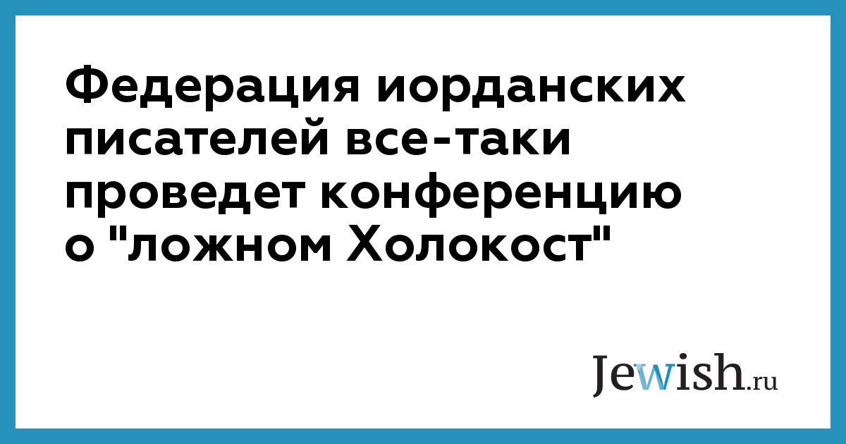 Федерация иорданских писателей все-таки проведет конференцию о "ложном Холокост"