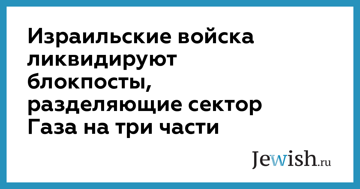 Израильские войска ликвидируют блокпосты, разделяющие сектор Газа на три части