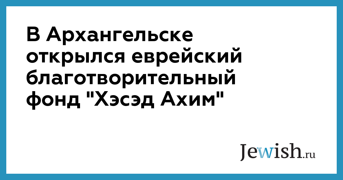В Архангельске открылся еврейский благотворительный фонд "Хэсэд Ахим"