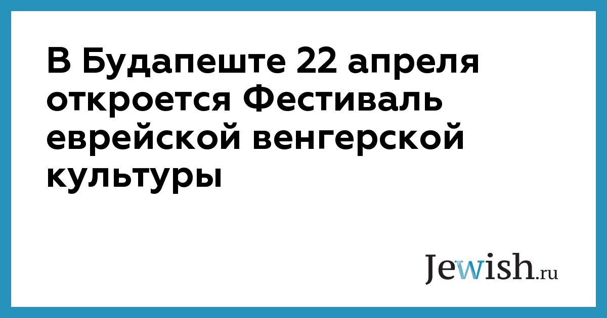 В Будапеште 22 апреля откроется Фестиваль еврейской венгерской культуры