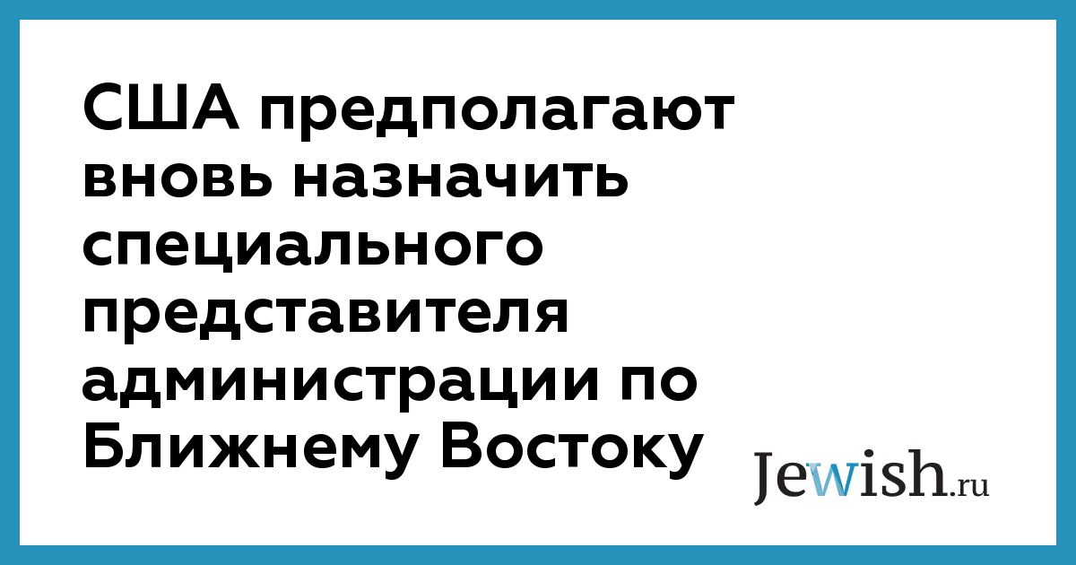 США предполагают вновь назначить специального представителя администрации по Ближнему Востоку