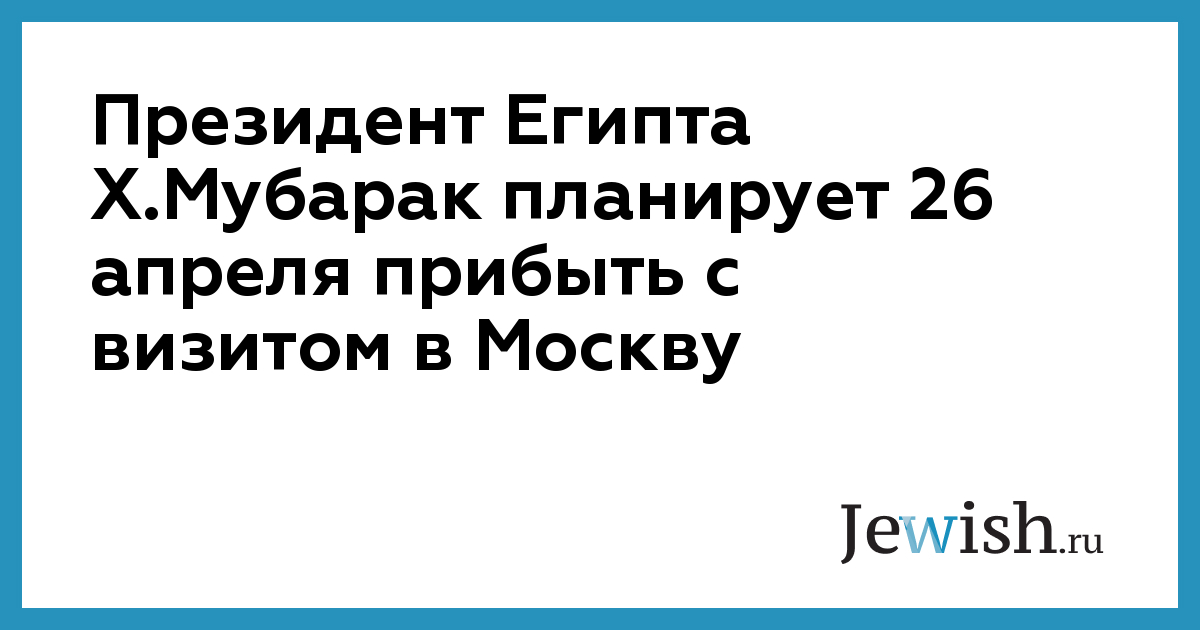 Президент Египта Х.Мубарак планирует 26 апреля прибыть с визитом в Москву