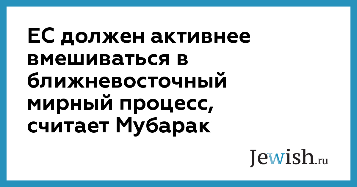 ЕС должен активнее вмешиваться в ближневосточный мирный процесс, считает Мубарак