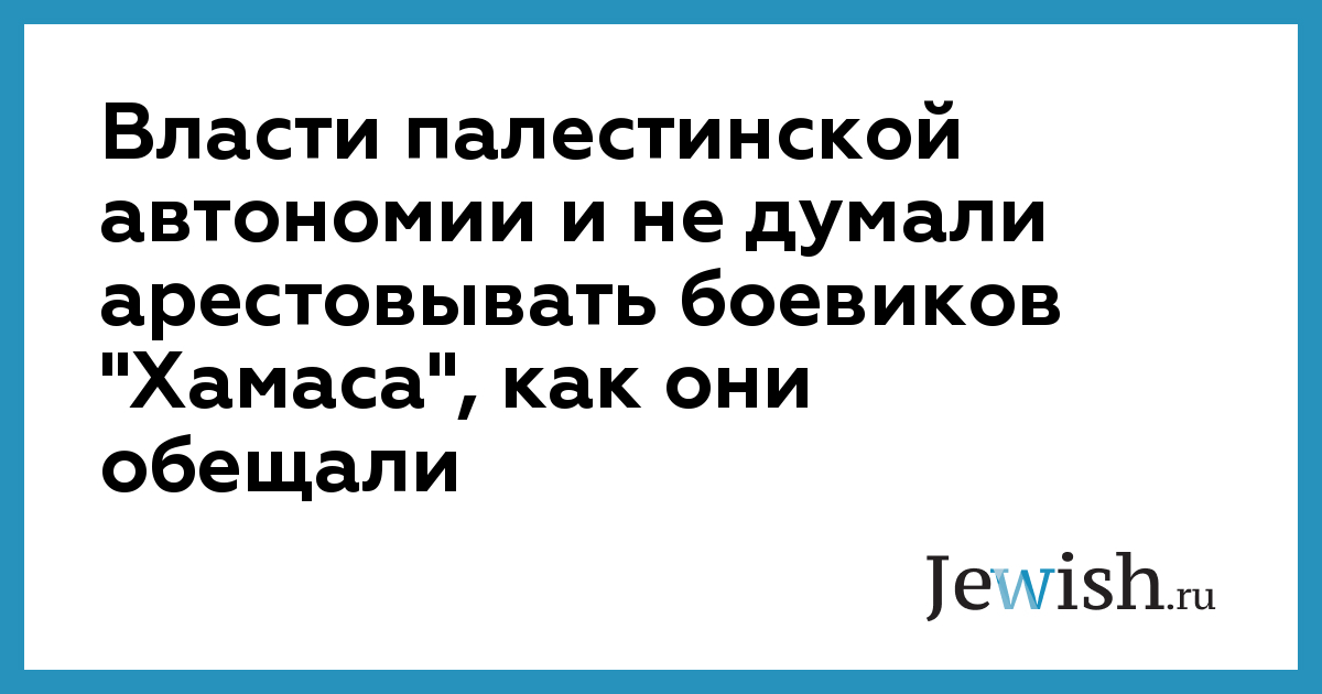 Власти палестинской автономии и не думали арестовывать боевиков "Хамаса", как они обещали