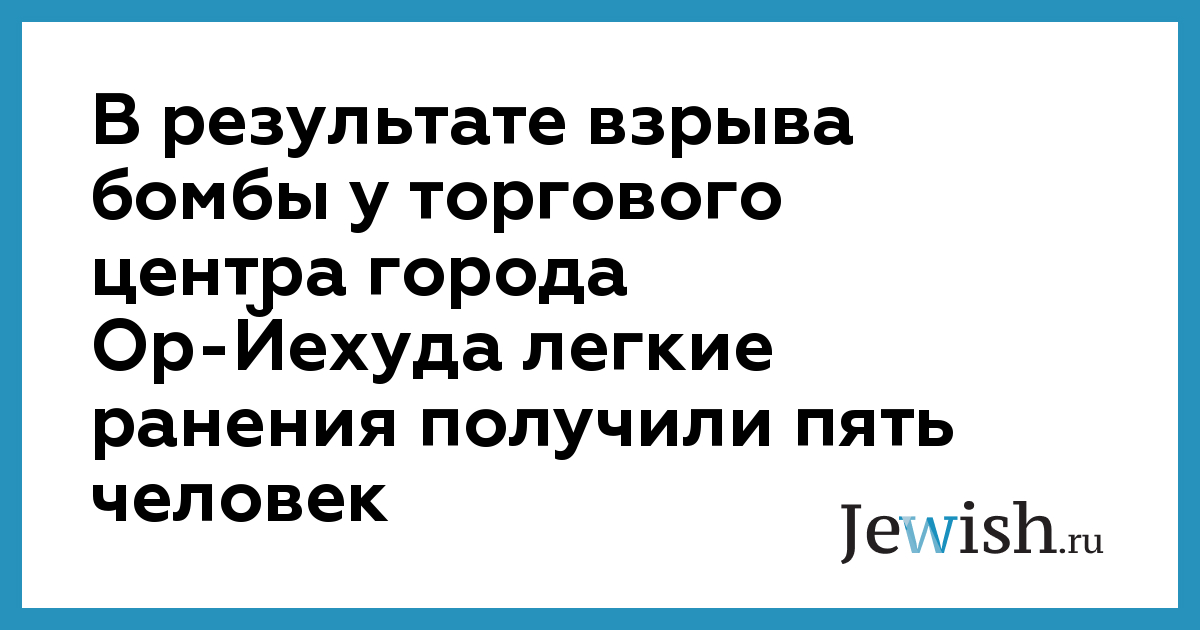 В результате взрыва бомбы у торгового центра города Ор-Йехуда легкие ранения получили пять человек