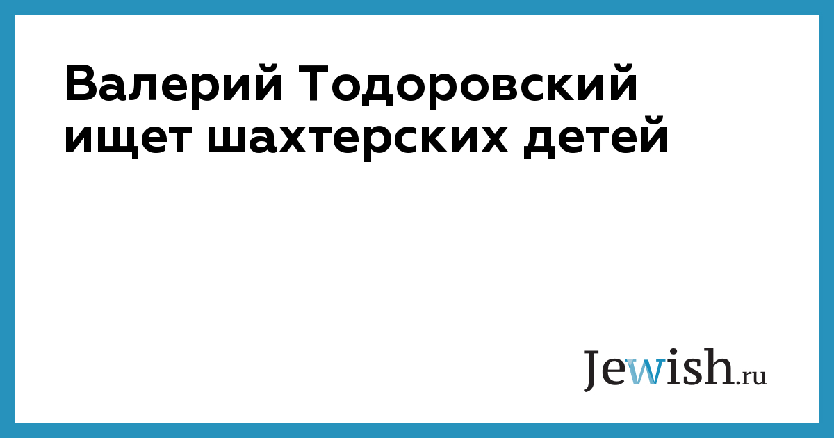 Валерий Тодоровский ищет шахтерских детей