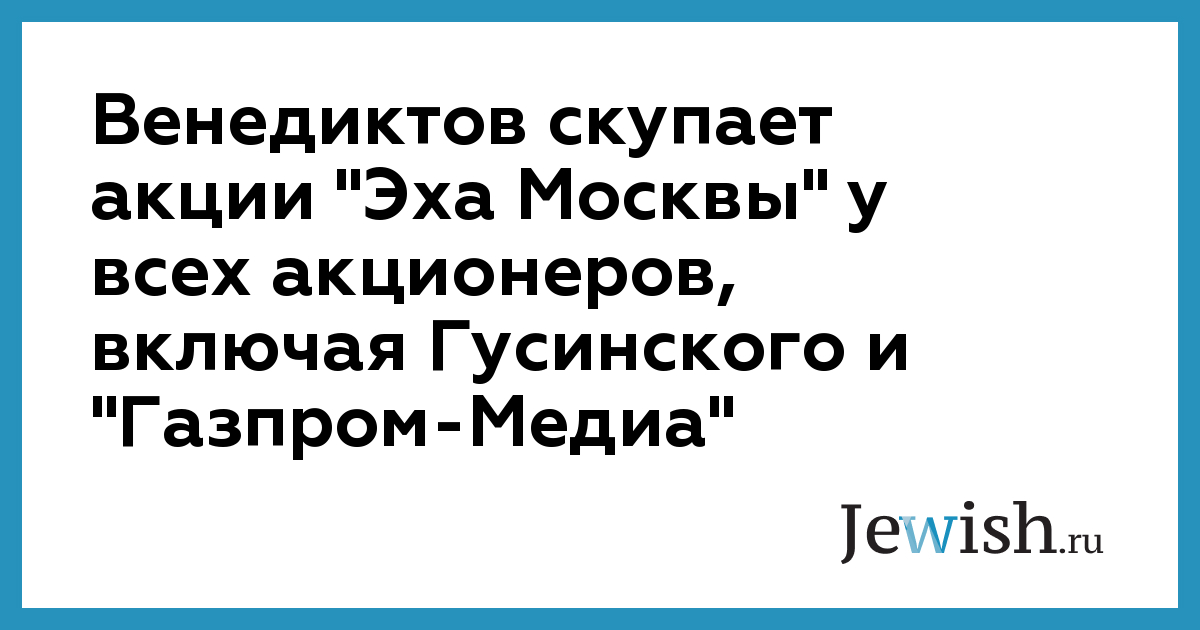 По словам Венедиктова, полтора месяца назад главе "Газпром-Медиа" Альфреду Коху было сделано предложение выкупить заложенный пакет Гусинского в пользу журналистов радиостанции. Кох в ответ назначил сумму и определил некие условия.
