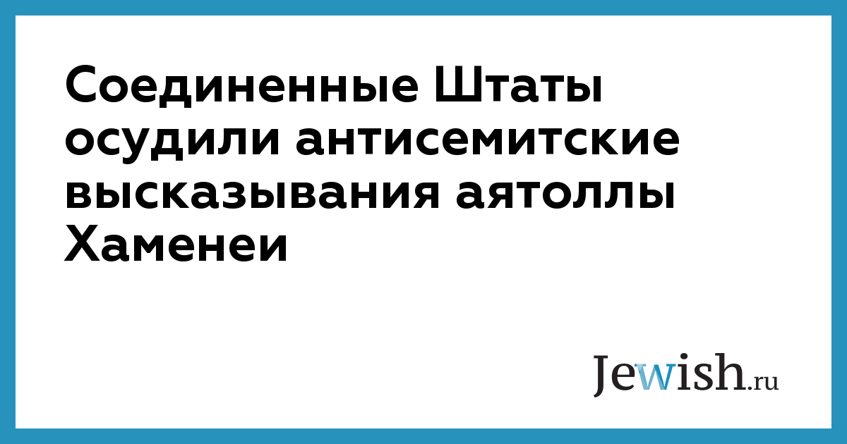 Соединенные Штаты осудили антисемитские высказывания аятоллы Хаменеи