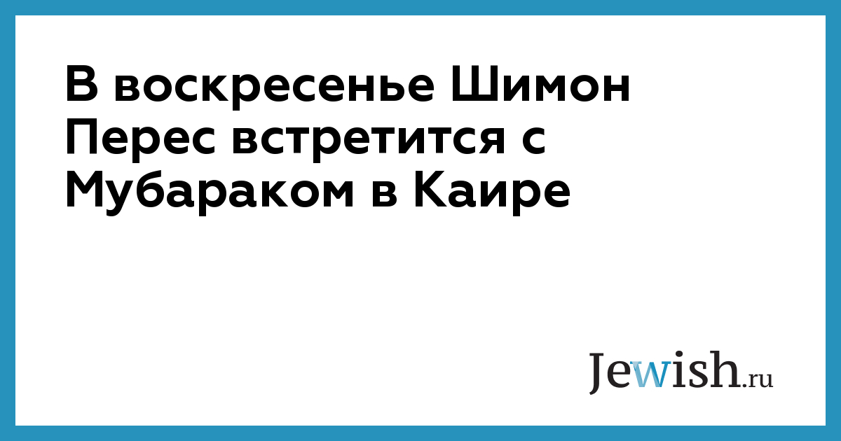 В воскресенье Шимон Перес встретится с Мубараком в Каире
