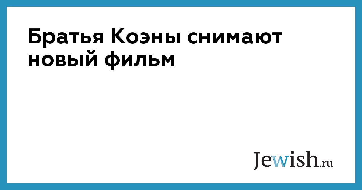Братья Коэны снимают новый фильм