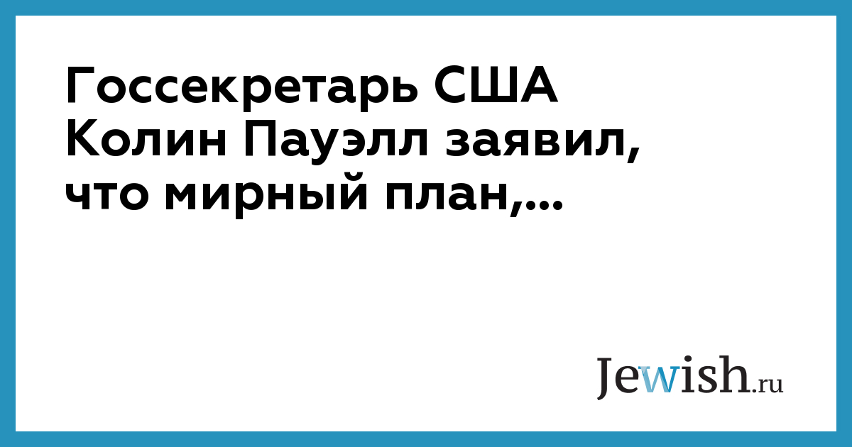 Госсекретарь США Колин Пауэлл заявил, что мирный план,...
