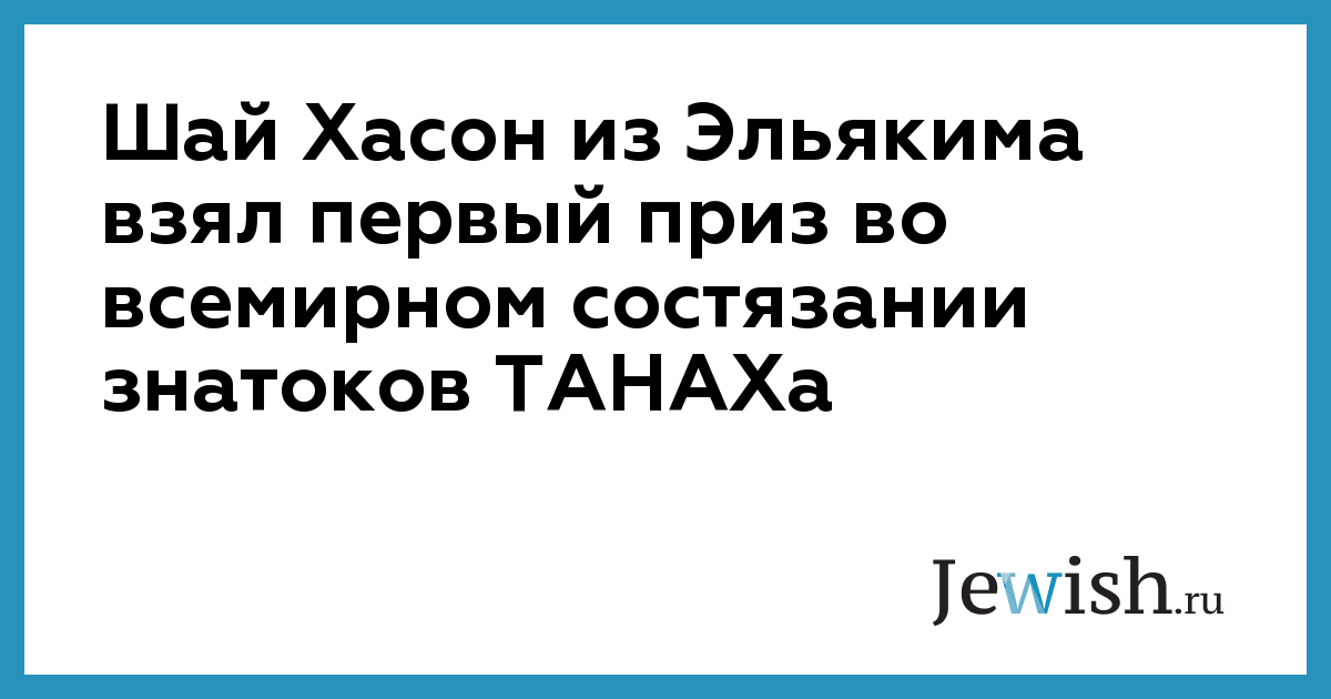 Шай Хасон из Эльякима взял первый приз во всемирном состязании знатоков ТАНАХа