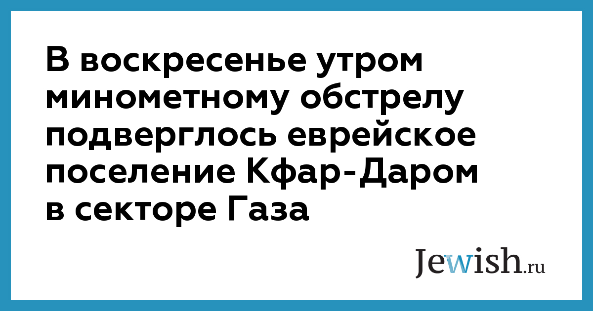 В воскресенье утром минометному обстрелу подверглось еврейское поселение Кфар-Даром в секторе Газа