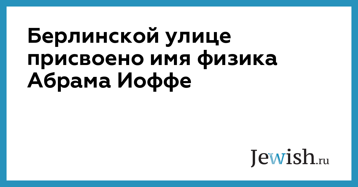 Берлинской улице присвоено имя физика Абрама Иоффе