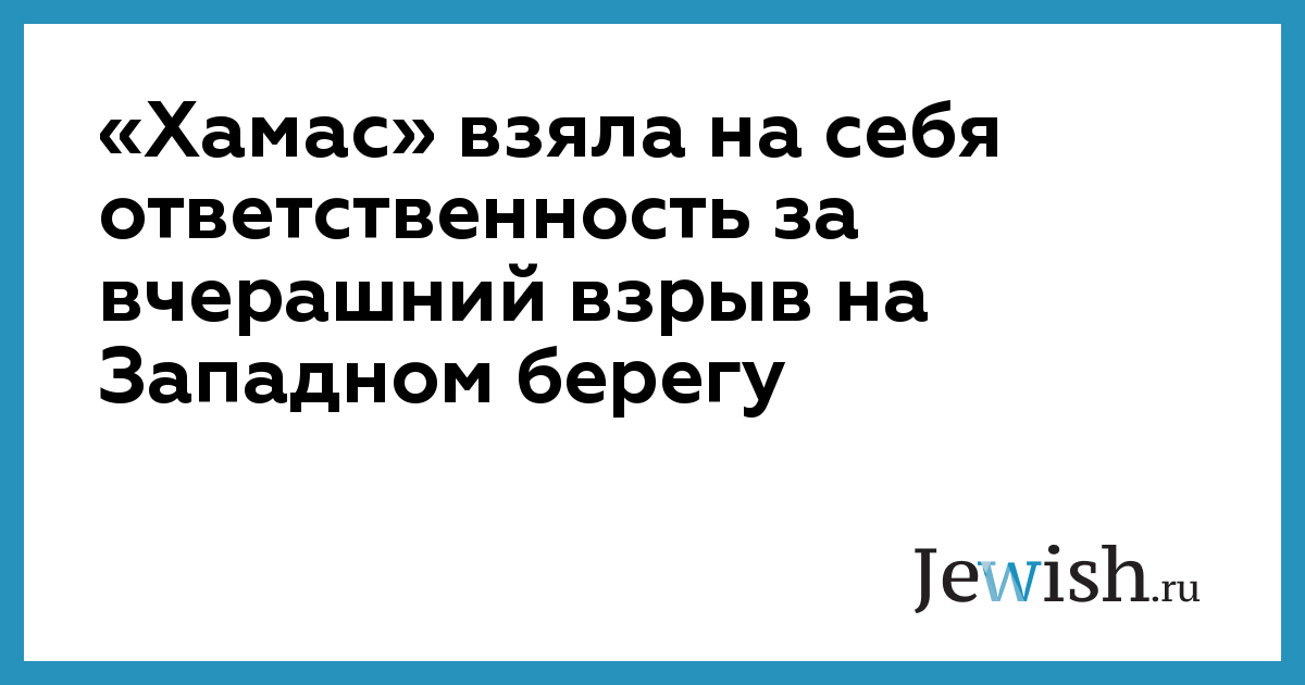 «Хамас» взяла на себя ответственность за вчерашний взрыв на Западном берегу