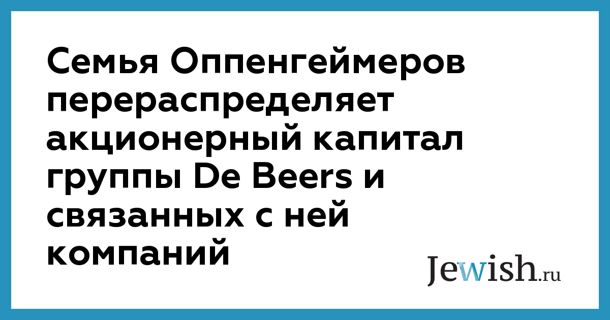 Семья Оппенгеймеров перераспределяет акционерный капитал группы De Beers и связанных с ней компаний