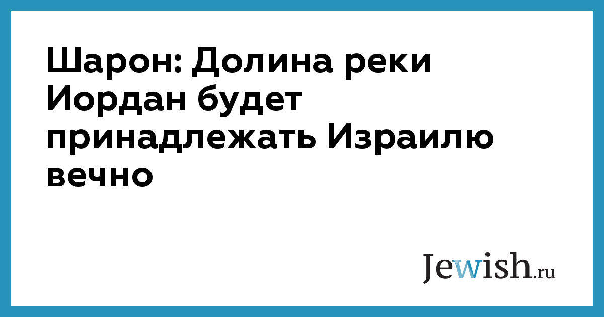 Шарон: Долина реки Иордан будет принадлежать Израилю вечно