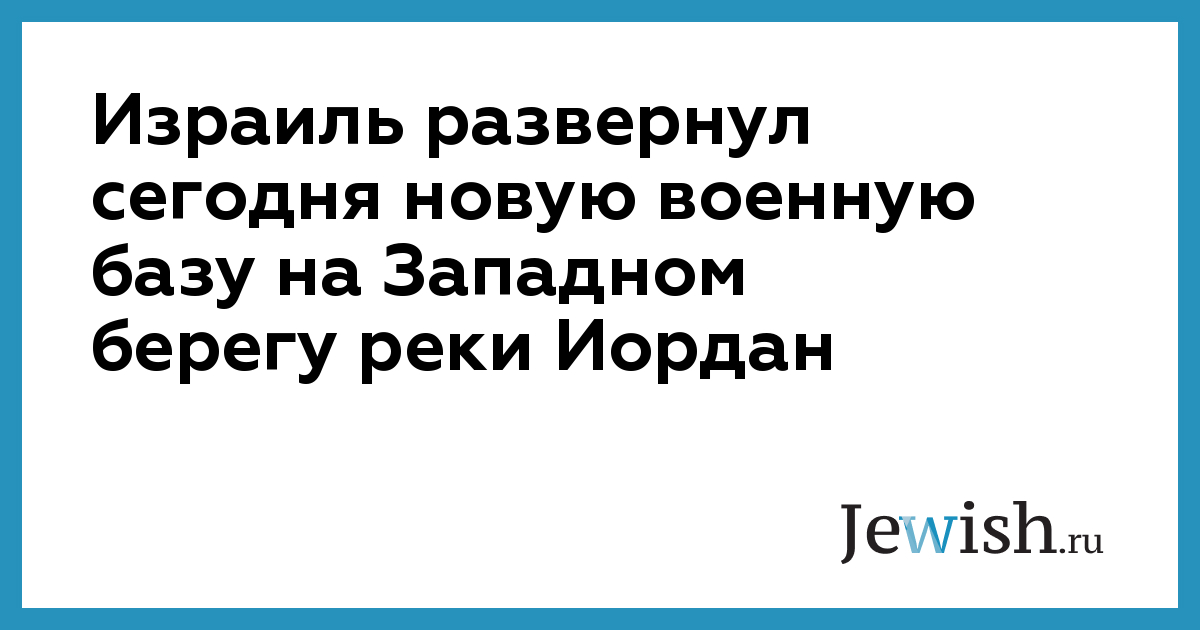 Израиль развернул сегодня новую военную базу на Западном берегу реки Иордан