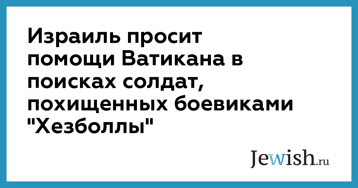 Израиль обратился к Ватикану с просьбой оказать помощь в получении информации о судьбе трех израильских солдат, похищенных боевиками экстремистского движения "Хезболла" вблизи ливанской границы в октябре 2000 года, сообщают официальные представители Израиля. Этот вопрос, как надеется израильская сторона, может быть поднят на встрече главы Римской католической церкви Иоанна Павла II с президентом Сирии Башаром Асадом и другими сирийскими официальными лицами в ходе визита понтифика в Дамаск 5 мая. Запрос об этом был сделан через папского нунция в Израиле, сообщил представитель израильского посольства в Риме Офер Бавли. Пресс-секретарь понтифика Хоакин Наварро-Вальс указал в ответ, что в настоящее время Ватикан не располагает какой-либо информацией по данному израильскому запросу. Поддерживаемая Ираном экстремистская группировка "Хезболла", возглавлявшая войну против Израиля на юге Ливана, в октябре прошлого года в результате засады у ферм Шебаа на границе с Ливаном захватила в заложники трех солдат израильской армии. Ранее "Хезболла" уже выдвигала инициативы обменять их на неуточненное число ливанских и арабских боевиков, удерживаемых в израильских тюрьмах.