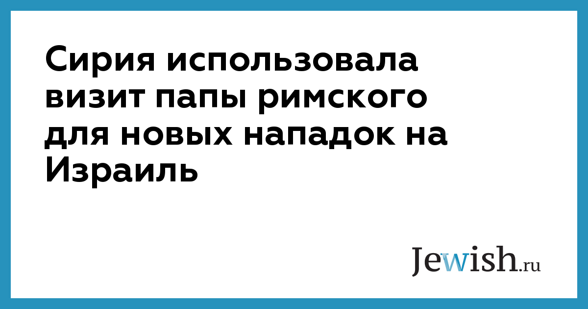Сирия использовала визит папы римского для новых нападок на Израиль