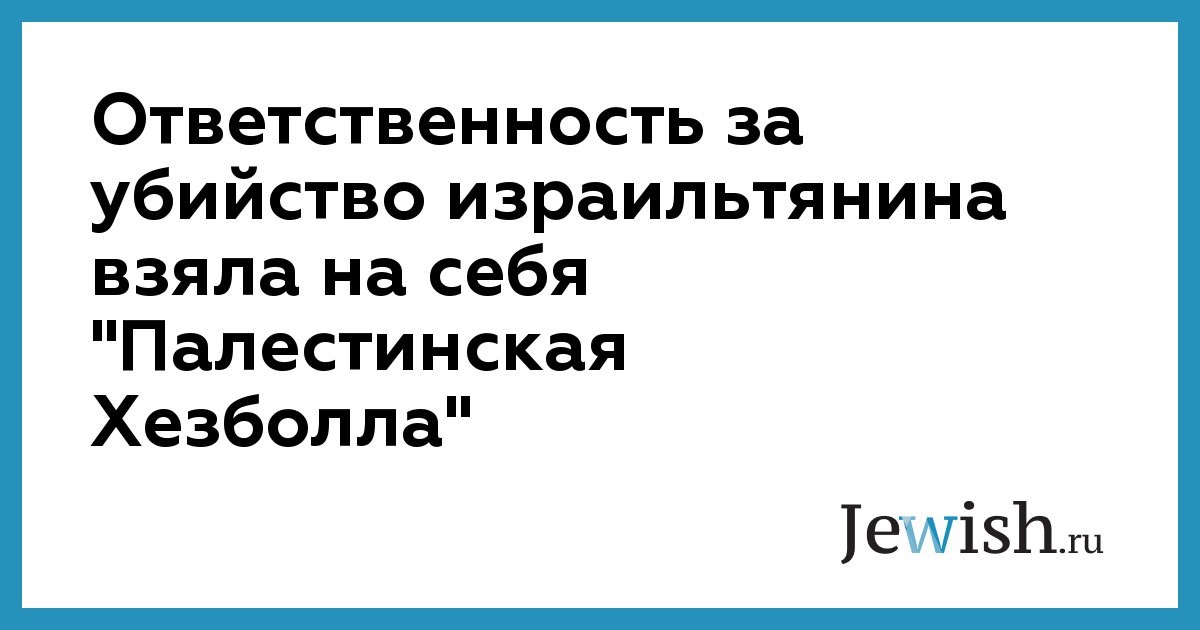 Ответственность за убийство израильтянина взяла на себя "Палестинская Хезболла"