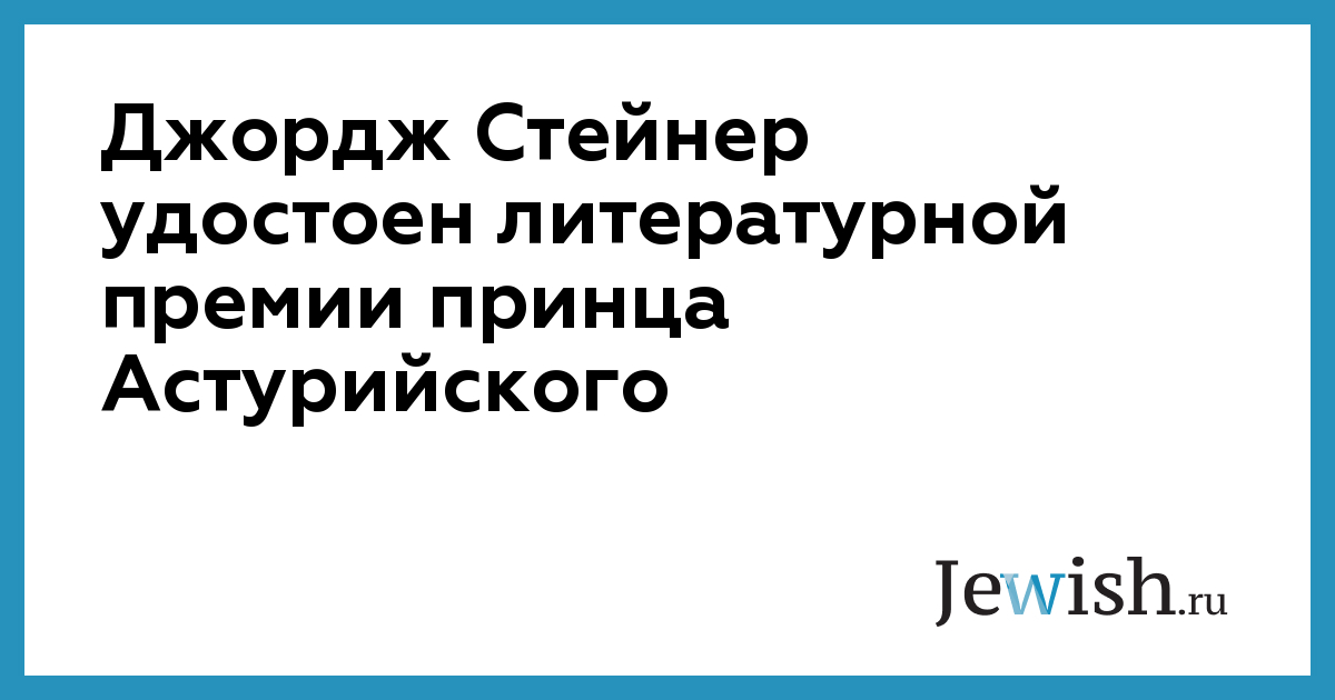 Джордж Стейнер удостоен литературной премии принца Астурийского