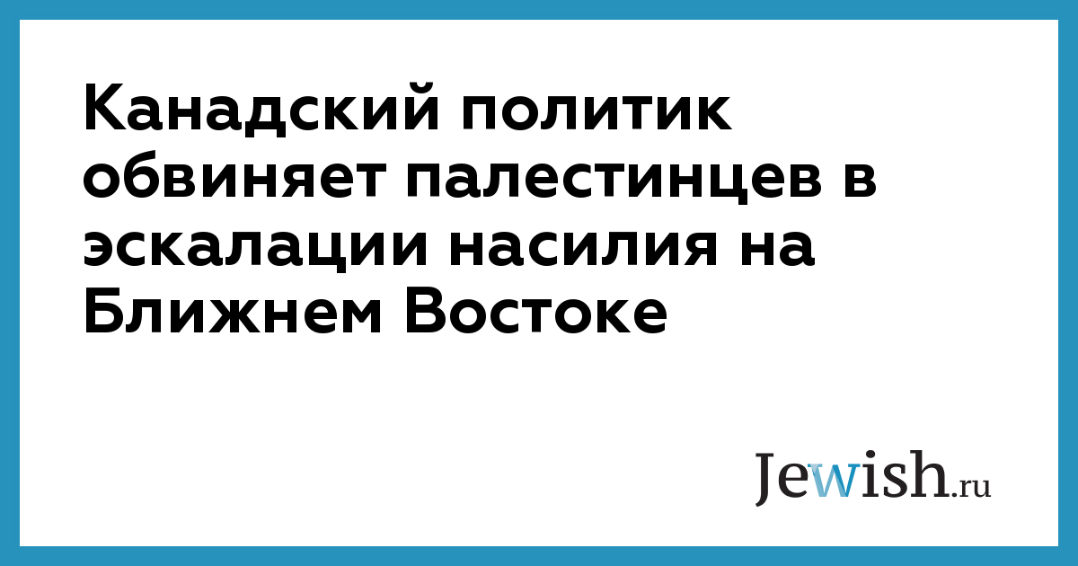 Канадский политик обвиняет палестинцев в эскалации насилия на Ближнем Востоке