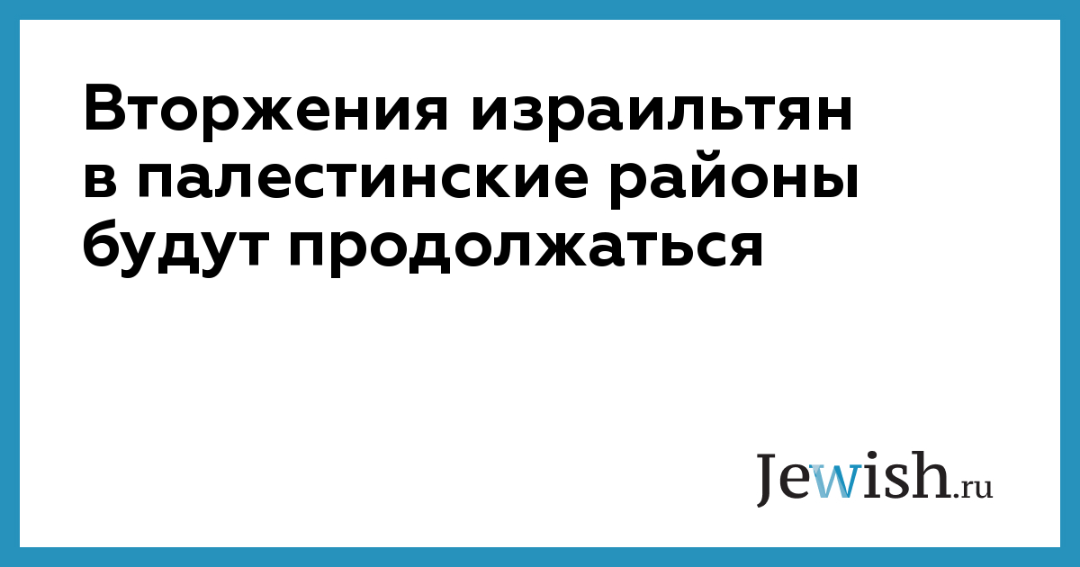 Вторжения израильтян в палестинские районы будут продолжаться