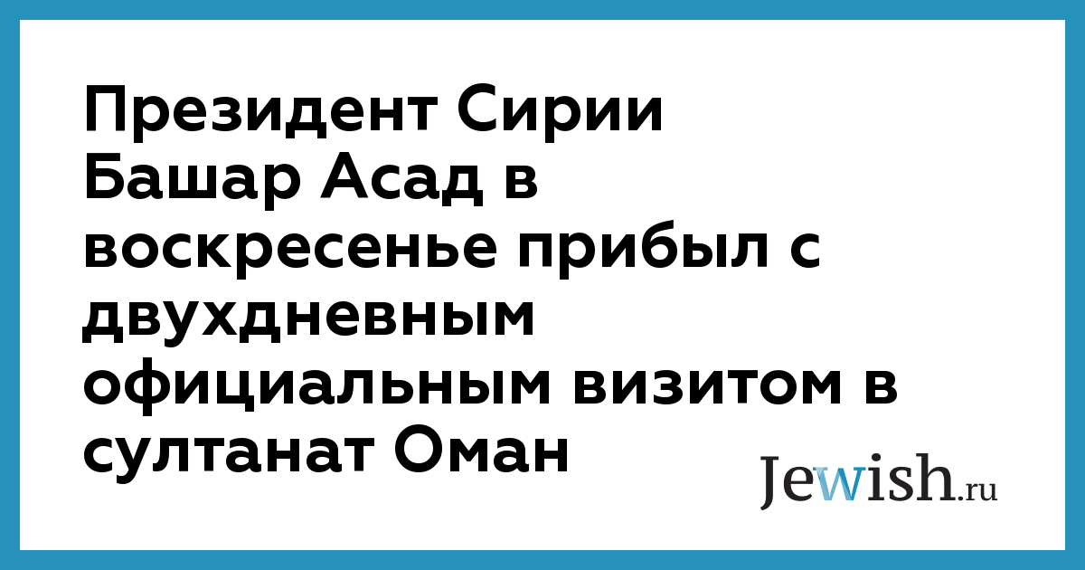 Президент Сирии Башар Асад в воскресенье прибыл с двухдневным официальным визитом в султанат Оман