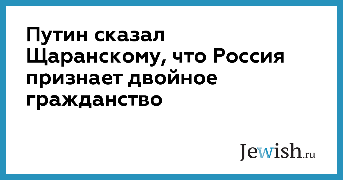 Путин сказал Щаранскому, что Россия признает двойное гражданство