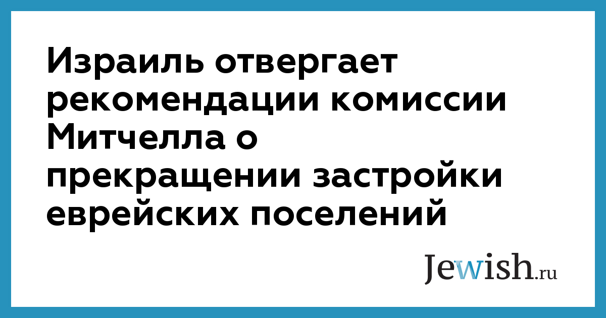Правительство Израиля официально отвергло рекомендации международной комиссии по замораживанию строительства в еврейских поселениях — якобы в целях скорейшего прекращения конфликта. По этому поводу Белому дому вручен официальный 7-страничный документ, в котором признается план возглавляемой сенатором Джорджем Митчеллом комиссии по прекращению насилия и возобновлению мирных переговоров, но проблема строительства поселений объявляется открытой для дальнейшего обсуждения. По заявлению израильской стороны, ее политика заключается не в создании новых поселений, а в строительстве жилья в уже имеющихся населенных пунктах в соответствии с ростом численности населения. В этой связи премьер-министр Израиля Ариэль Шарон недавно заявил, что замораживание строительных работ в еврейских поселениях станет "наградой" палестинцам за непрекращающиеся акции насилия. Со своей стороны, палестинские представители заявили о принятии положений доклада комиссии Дж.Митчелла "в пакете" и потребовали такого же подхода от Израиля. Международная комиссия была создана по решению ближневосточного саммита в Шарм-аш-Шейхе в октябре 2000г. и недавно представила противоборствующим сторонам проект своего плана урегулирования.