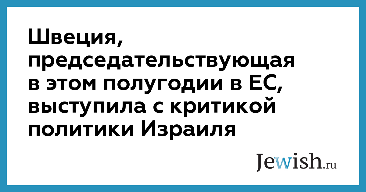 Швеция, председательствующая в этом полугодии в ЕС, выступила с критикой политики Израиля