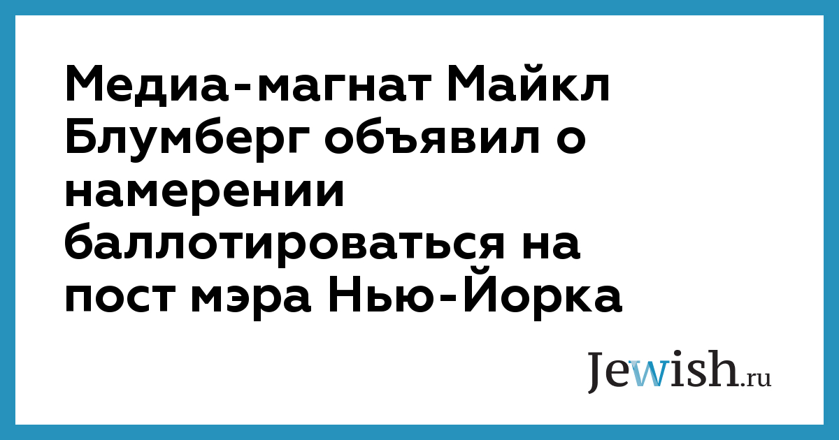 Медиа-магнат Майкл Блумберг объявил о намерении баллотироваться на пост мэра Нью-Йорка