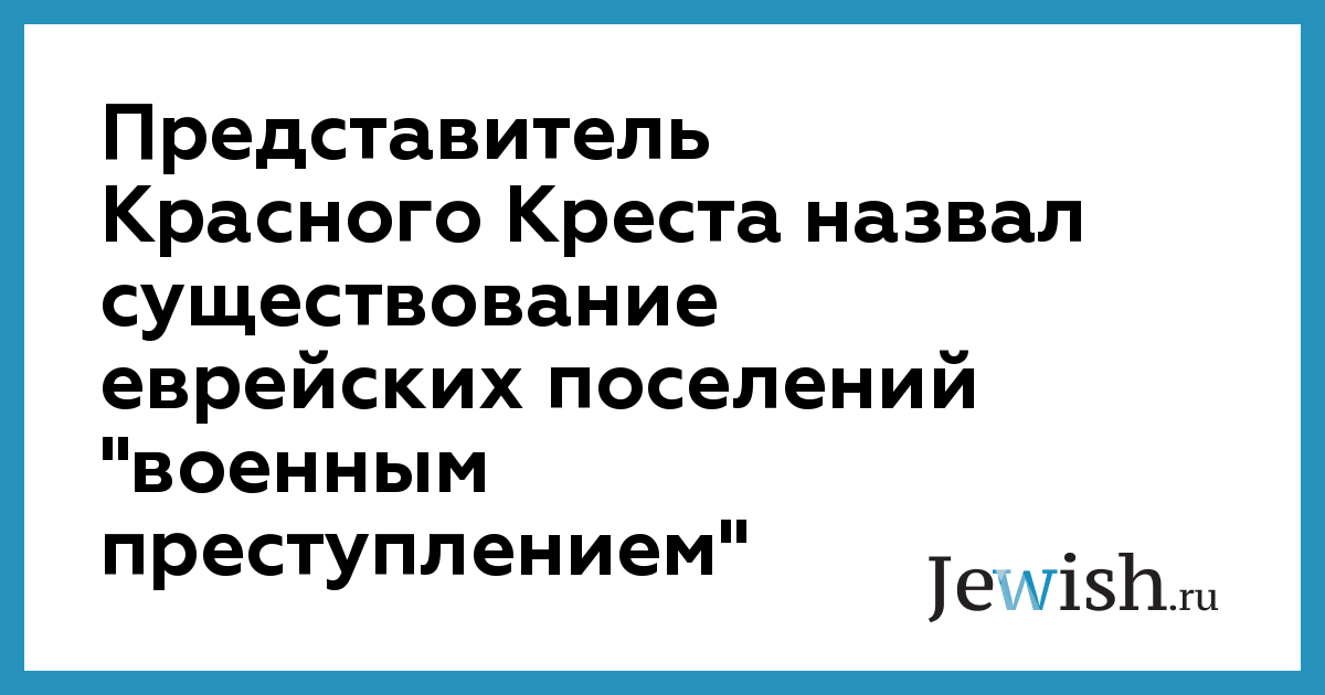 Представитель Красного Креста назвал существование еврейских поселений "военным преступлением"