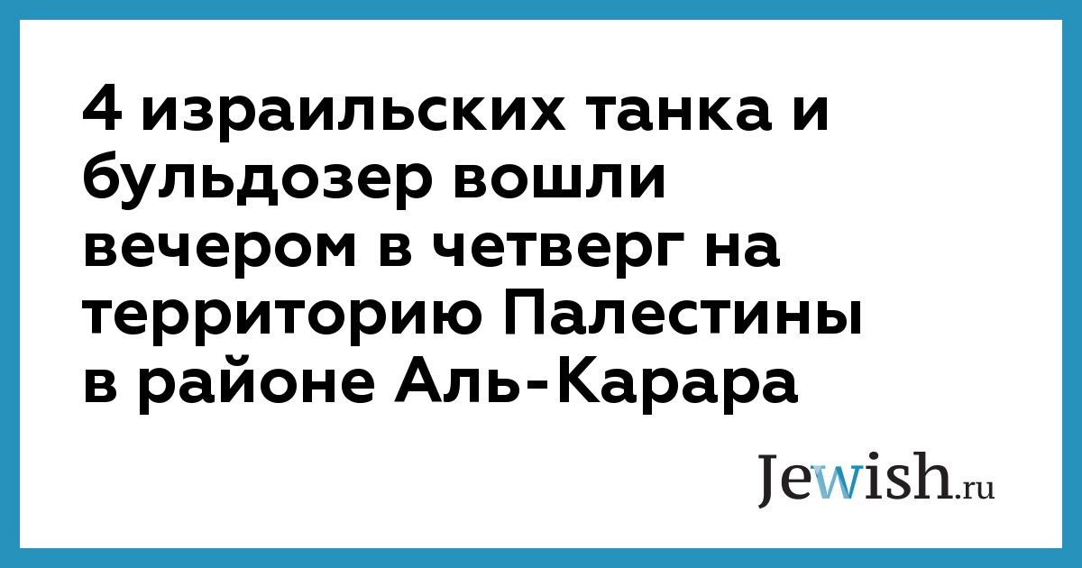 Как передает РИА "Новости", танки и бульдозер пришли из израильского поселения Нетцер Хазани, расположенного рядом с районом Аль-Карара.