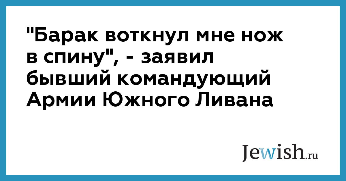 "Барак воткнул мне нож в спину", — заявил бывший командующий Армии Южного Ливана
