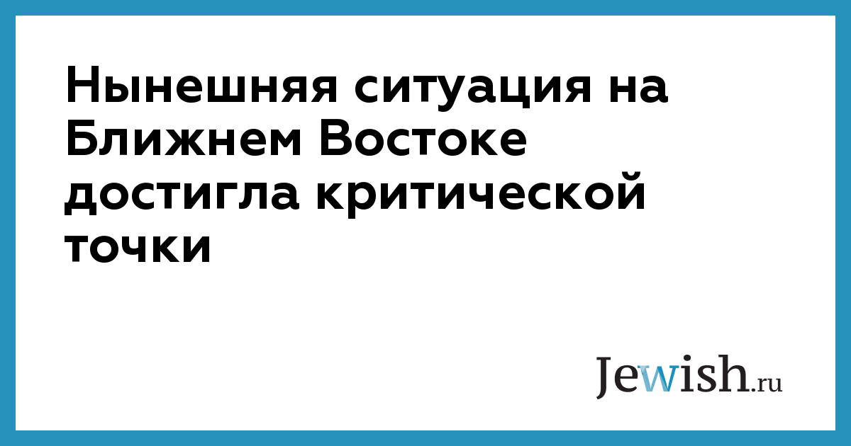 Нынешняя ситуация на Ближнем Востоке достигла критической точки