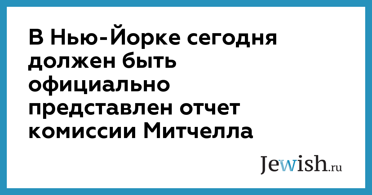 В Нью-Йорке сегодня должен быть официально представлен отчет комиссии Митчелла