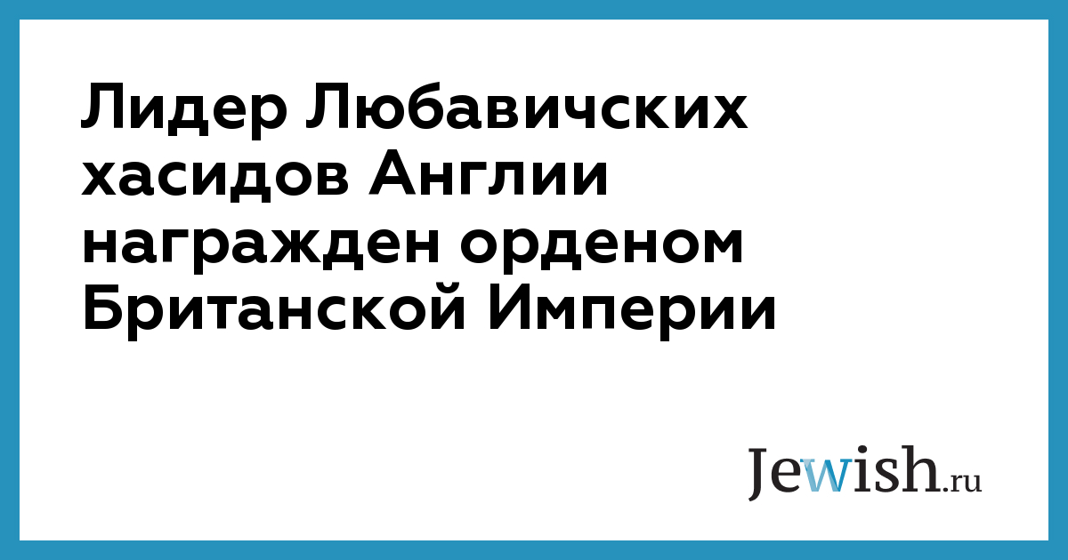 Лидер Любавичских хасидов Англии награжден орденом Британской Империи