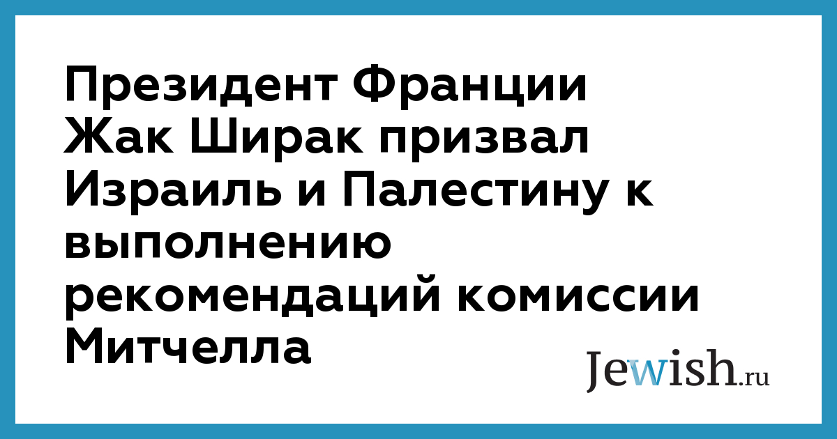 Президент Франции Жак Ширак призвал Израиль и Палестину к выполнению рекомендаций комиссии Митчелла