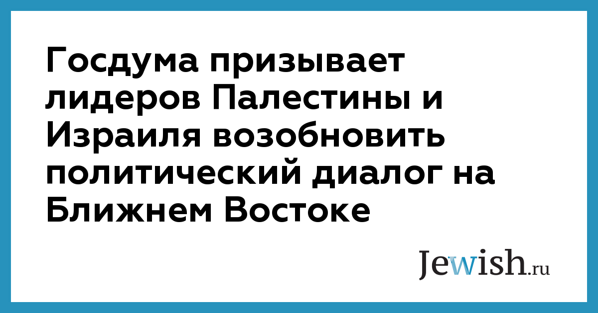 Госдума призывает лидеров Палестины и Израиля возобновить политический диалог на Ближнем Востоке