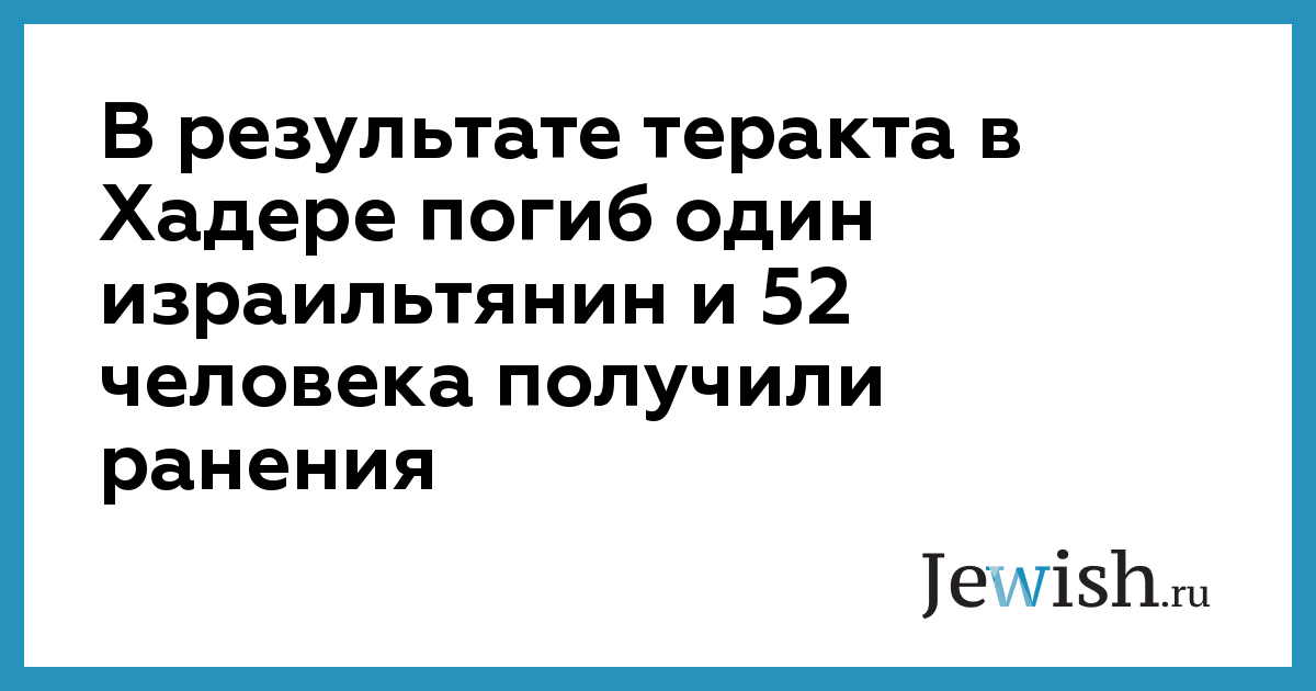 В результате теракта в Хадере погиб один израильтянин и 52 человека получили ранения