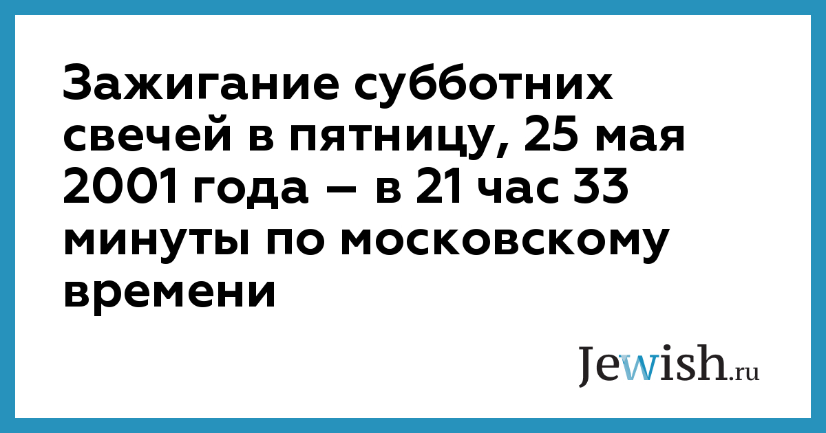 Зажигание субботних свечей в пятницу, 25 мая 2001 года – в 21 час 33 минуты по московскому времени