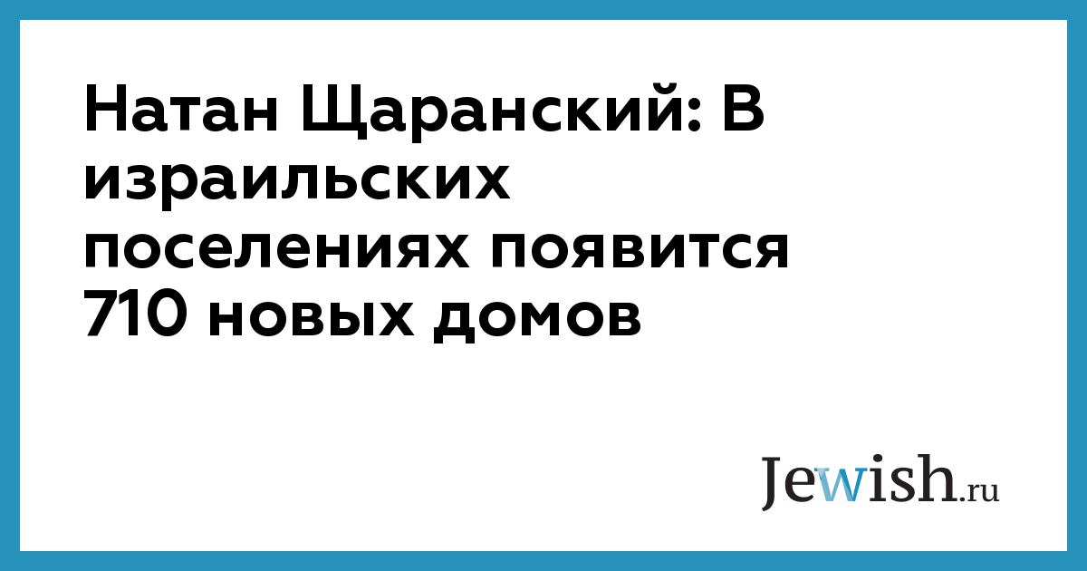 Натан Щаранский: В израильских поселениях появится 710 новых домов