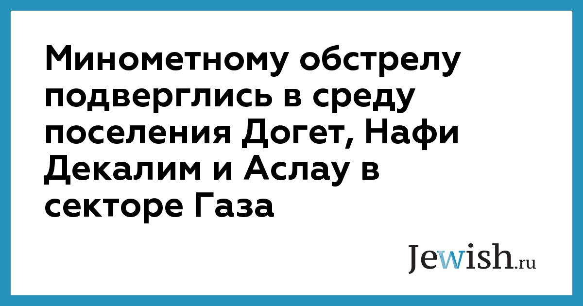 Минометному обстрелу подверглись в среду поселения Догет, Нафи Декалим и Аслау в секторе Газа