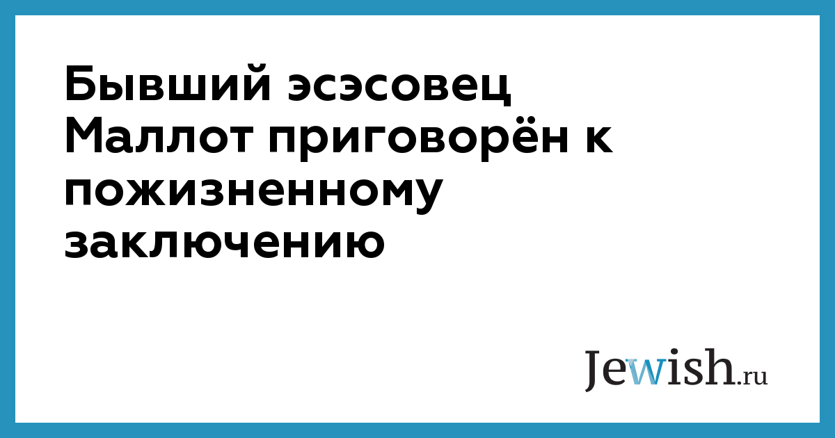 В среду земельный суд Мюнхена приговорил бывшего эсэсовца Антона Маллота к пожизненному заключению по обвинению в убийстве и в попытке совершения убийства. Суд признал 89-летнего Маллота виновным в совершении двух преступлений. В 1944 году, будучи надзирателем тюрьмы «Малая крепость» в чешском городе Терезин, Маллот собственноручно убил находившегося в заключении еврея. В феврале 1943 года надзиратель также предпринял попытку убить ещё одного заключённого, выстрелив в него из пистолета. Однако факт гибели заключённого не доказан, поэтому по второму пункту против подсудимого было выдвинуто лишь обвинение в попытке совершения убийства. Председатель суда Юрген Ханрайх, оглашая приговор, пояснил, что к пожизненному заключению Маллот был приговорён потому, что он не был обычным исполнителем приказов. Действия надзирателя были обусловлены ненавистью к евреям и другим политзаключённым, отметил судья. В течение последних 50 лет Маллот, не скрываясь, проживал в Италии и Австрии. Несколько судебных процессов, устроенных против него в ряде стран, закончились безрезультатно из-за недостатка доказательств. Судебное разбирательство в отношении бывшего эсэсовца было возобновлено в 1999 году после того, как был найден новый свидетель.