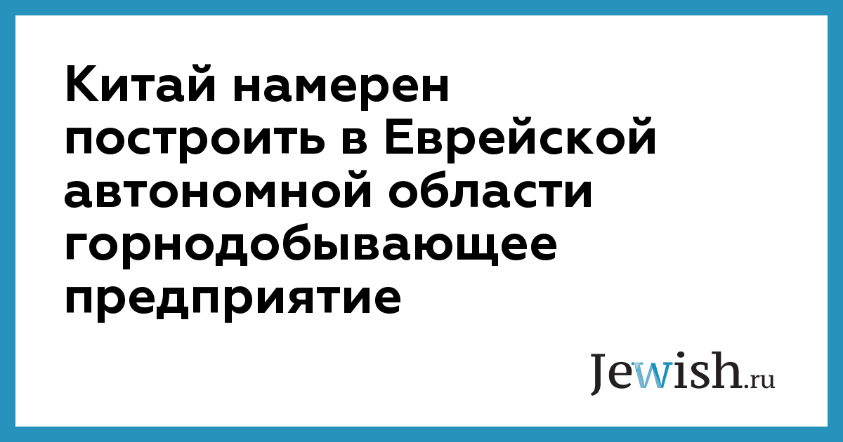 Китай намерен построить в Еврейской автономной области горнодобывающее предприятие