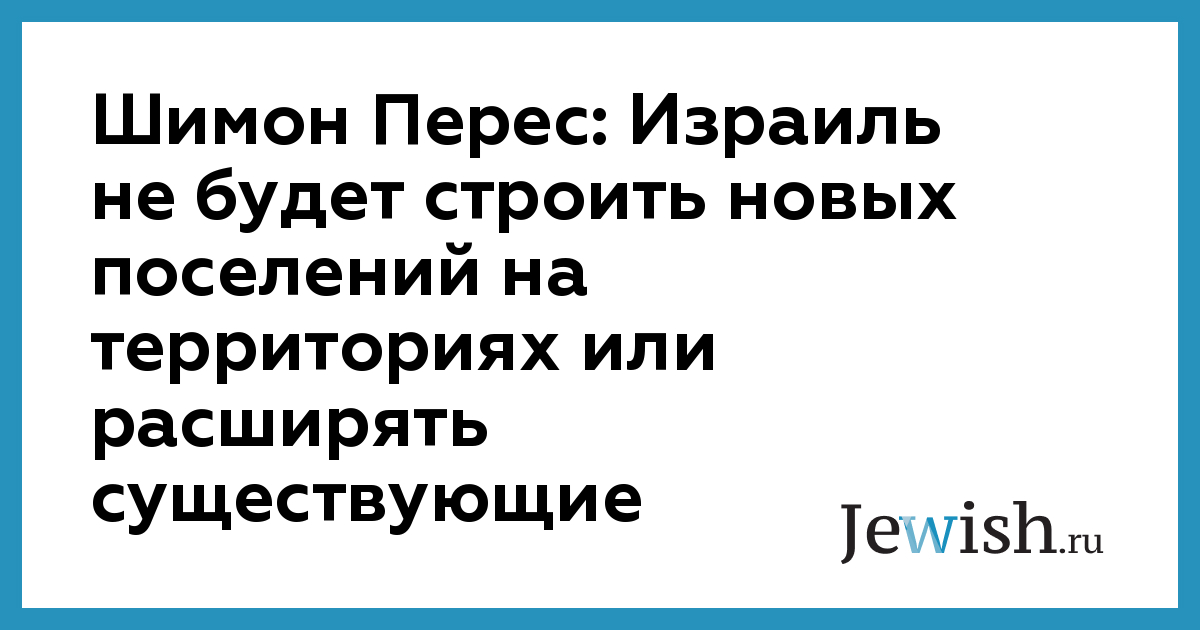 Шимон Перес: Израиль не будет строить новых поселений на территориях или расширять существующие